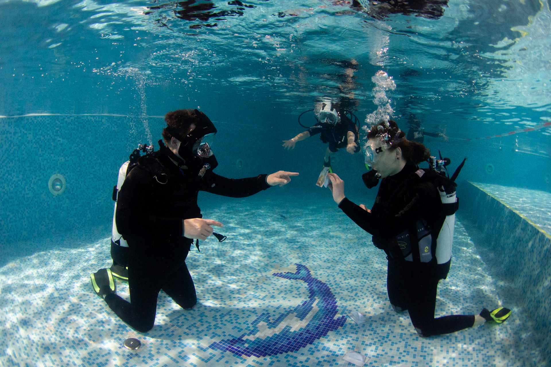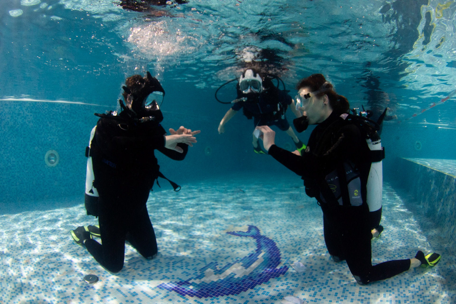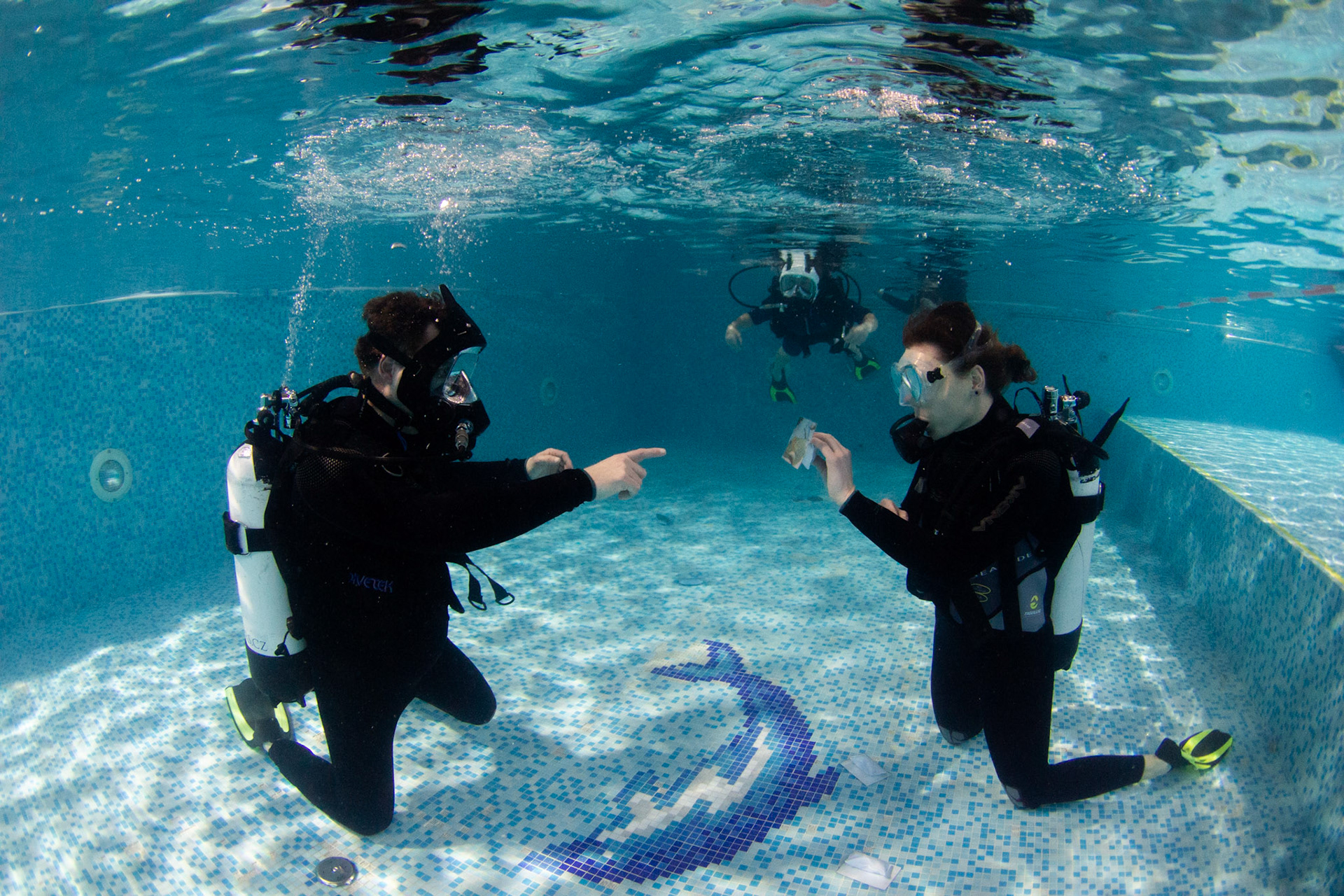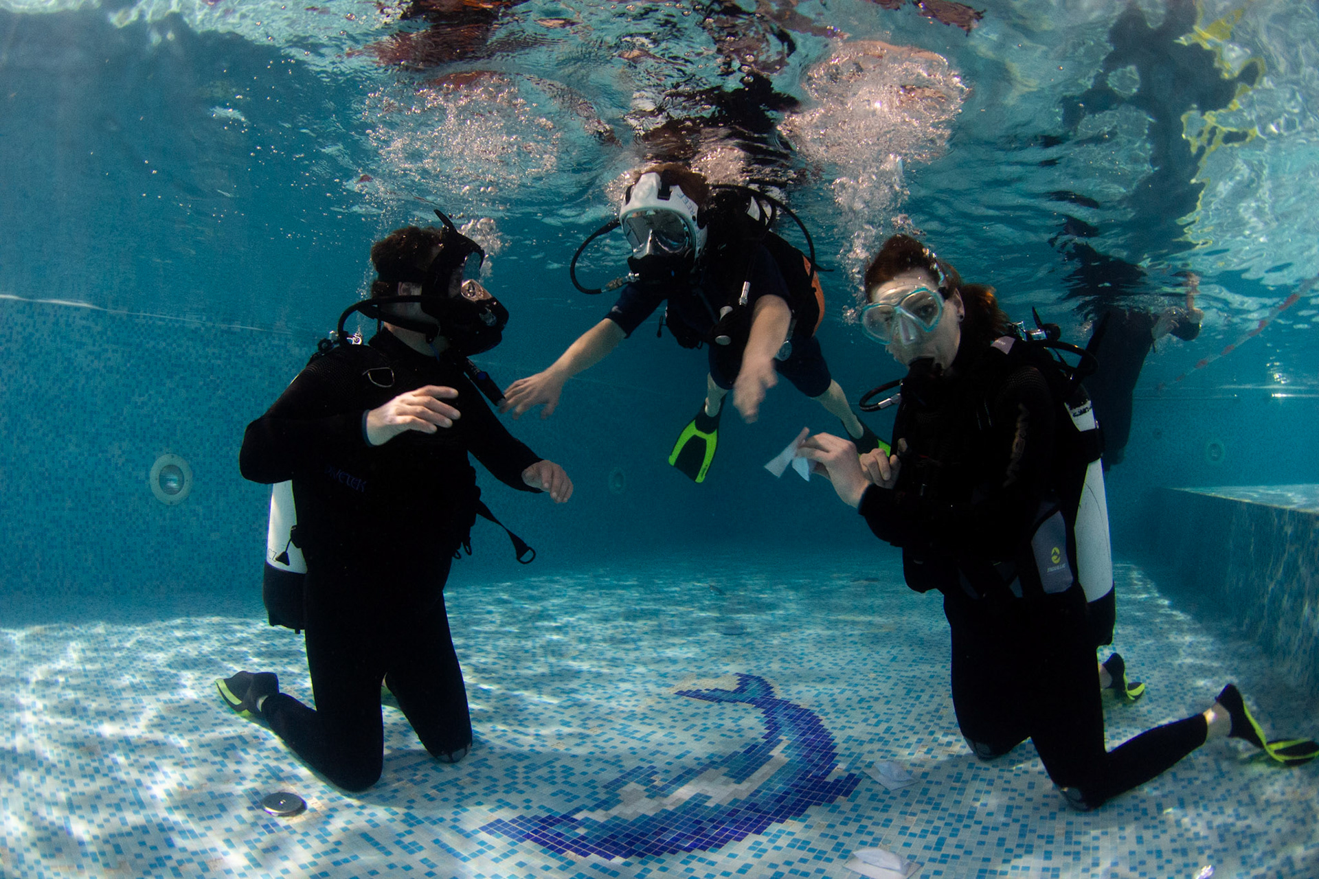 Při našich trénincích se snažíme rozvíjet i další dovednosti našich členů, učíme se používat pod vodou různé pomůcky, poznáváme vodní živočichy, učíme se signály. Někomu to jde lépe, jinému pomaleji, ale všechny nás to baví!