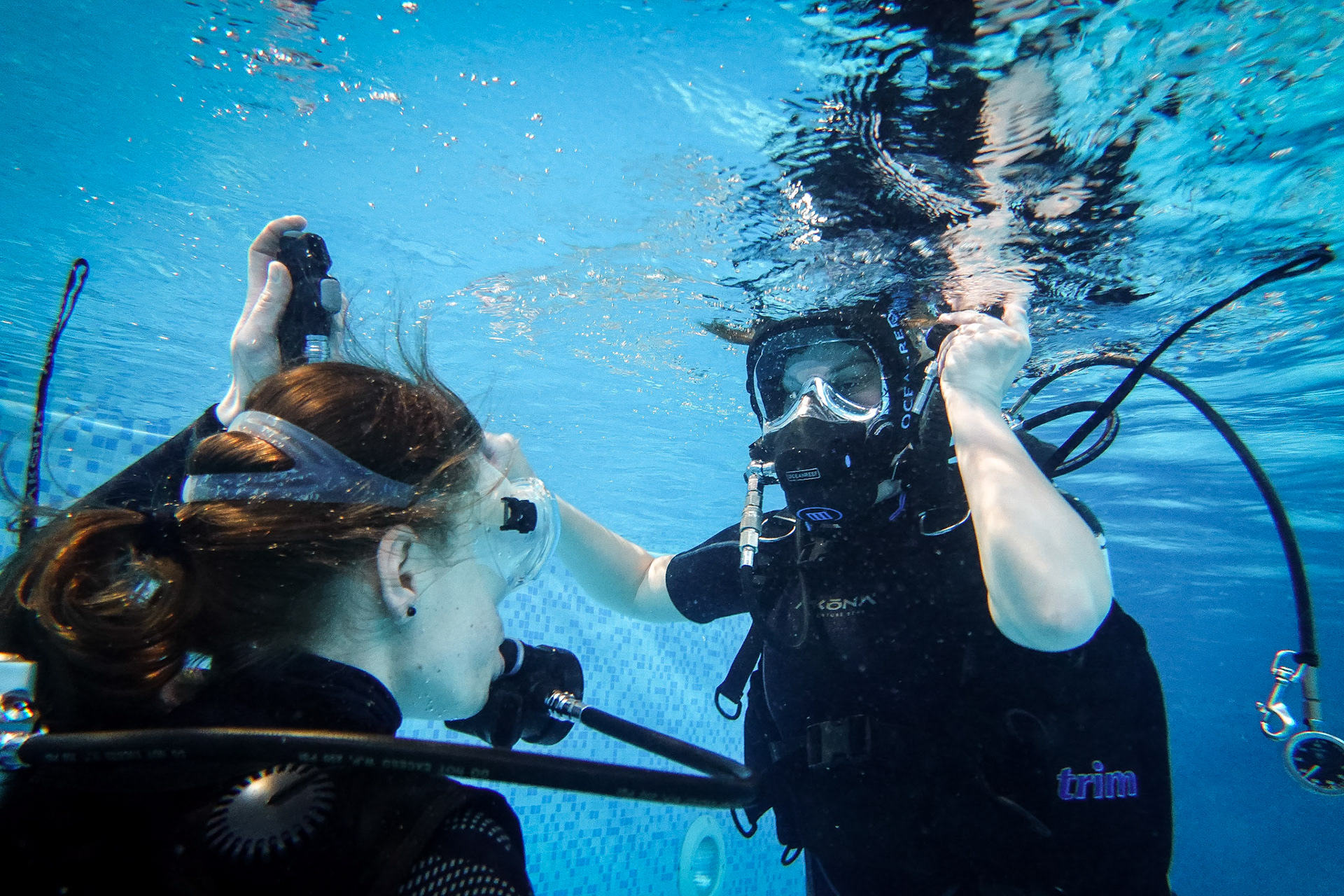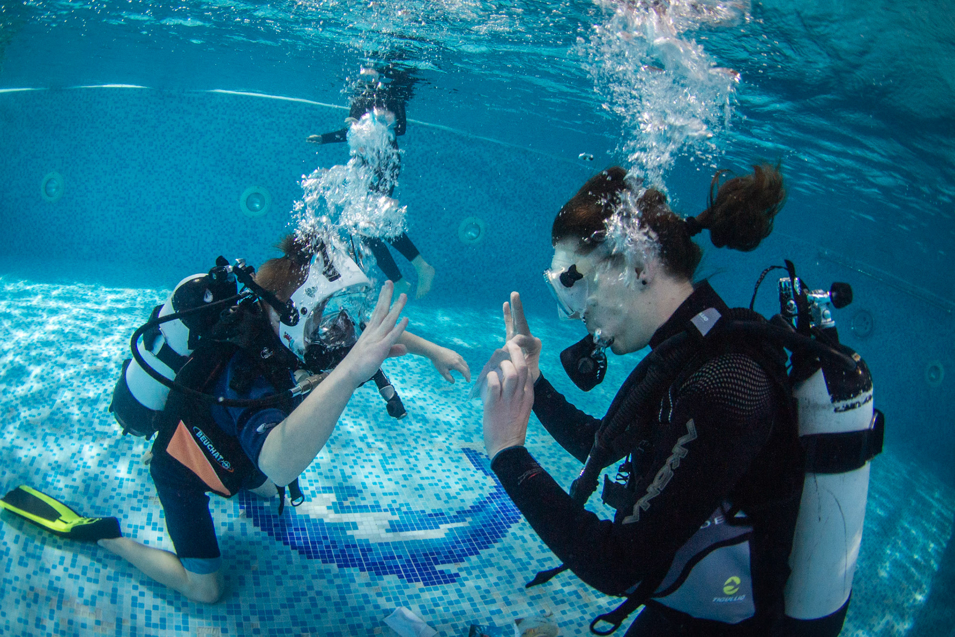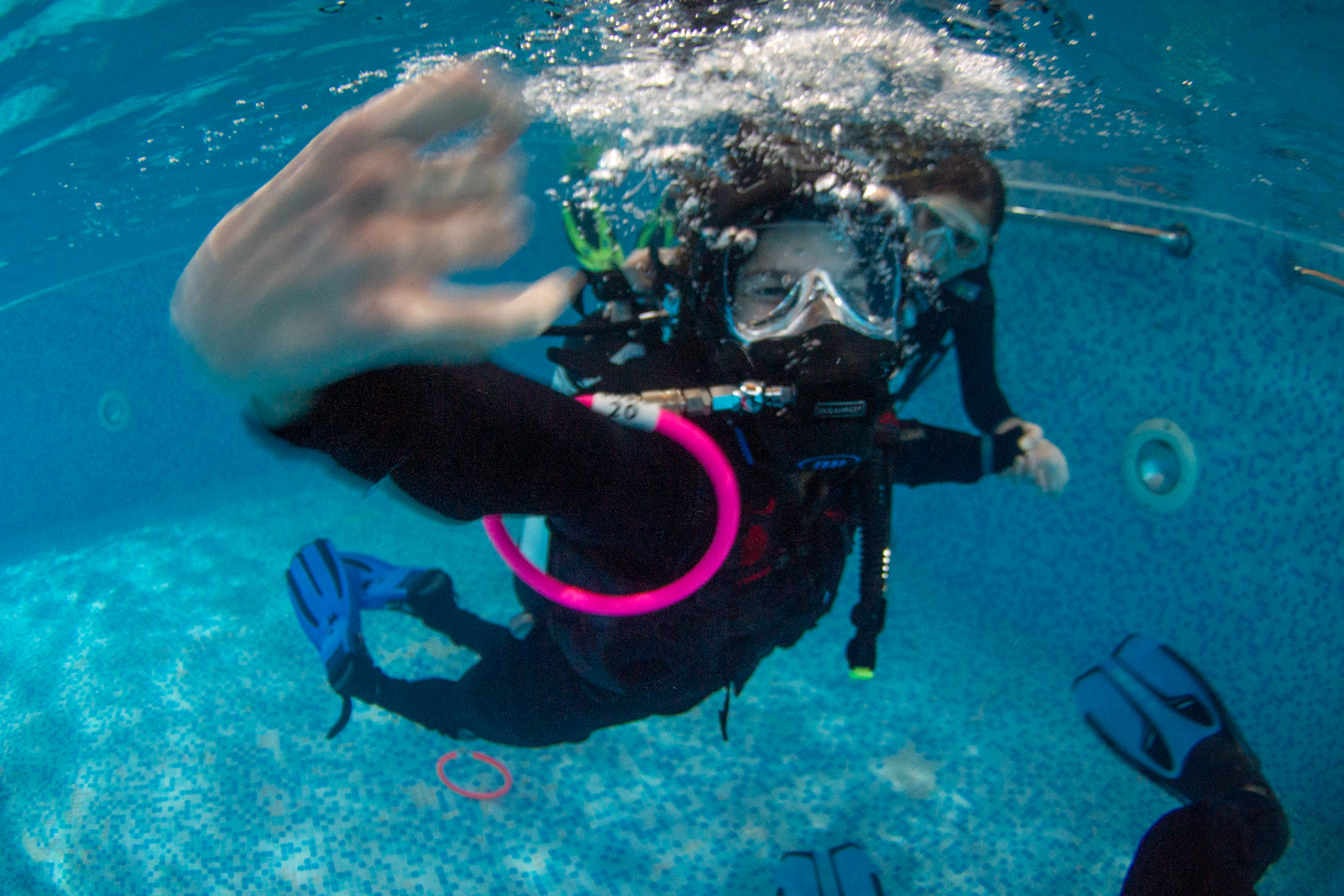 Při našich trénincích se snažíme rozvíjet i další dovednosti našich členů, učíme se používat pod vodou různé pomůcky, poznáváme vodní živočichy, učíme se signály. Někomu to jde lépe, jinému pomaleji, ale všechny nás to baví!