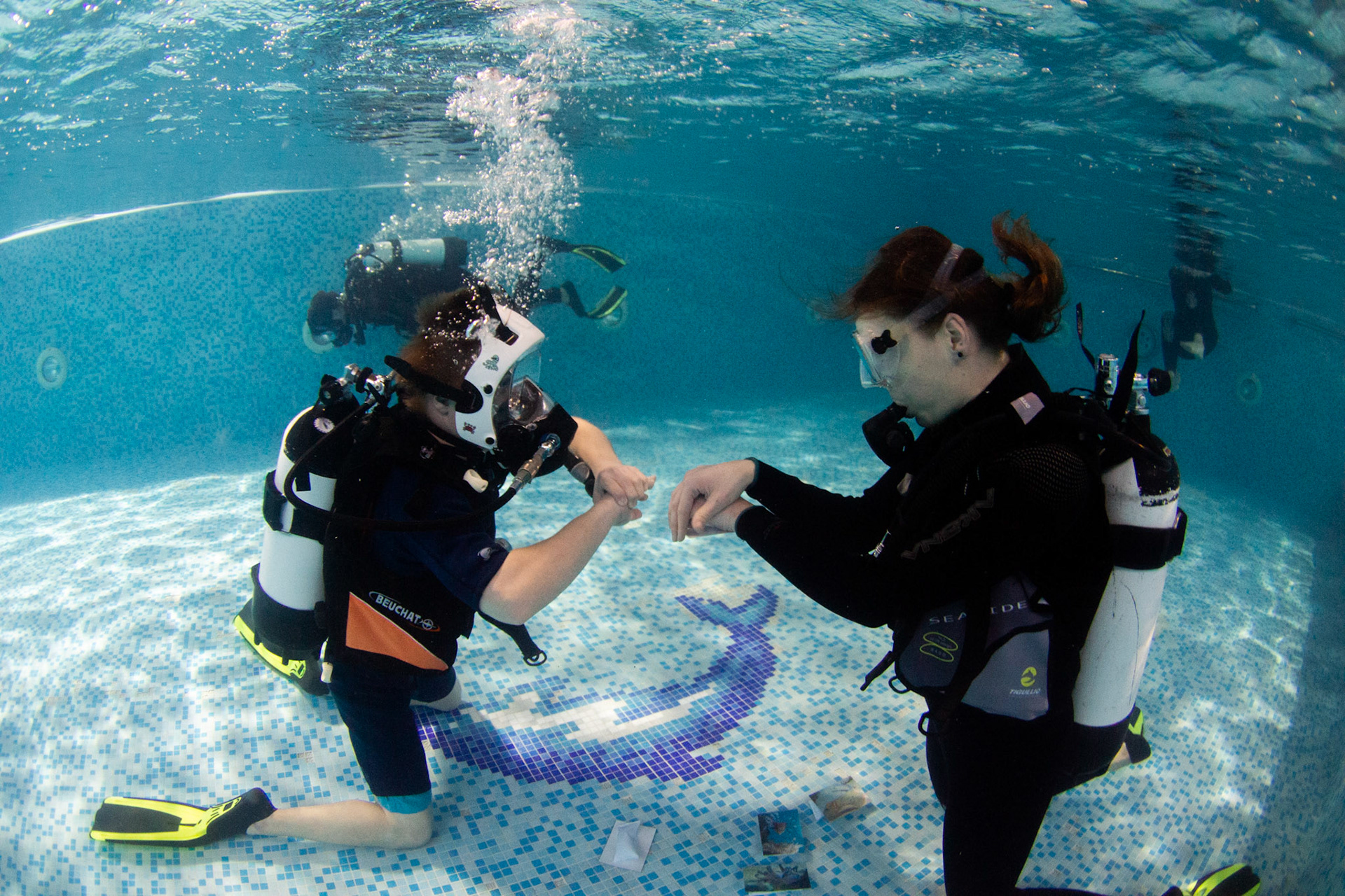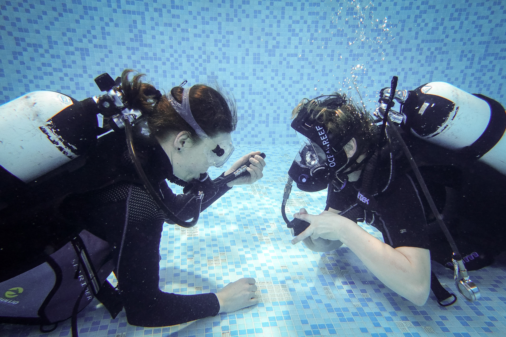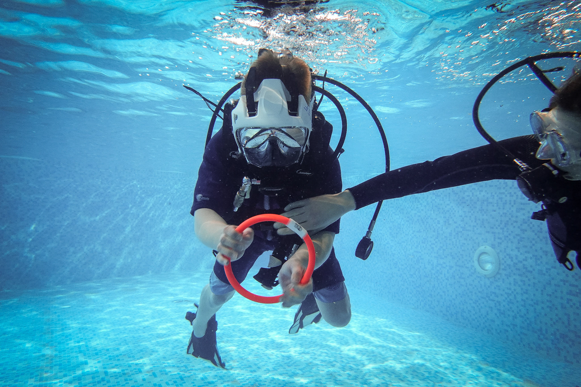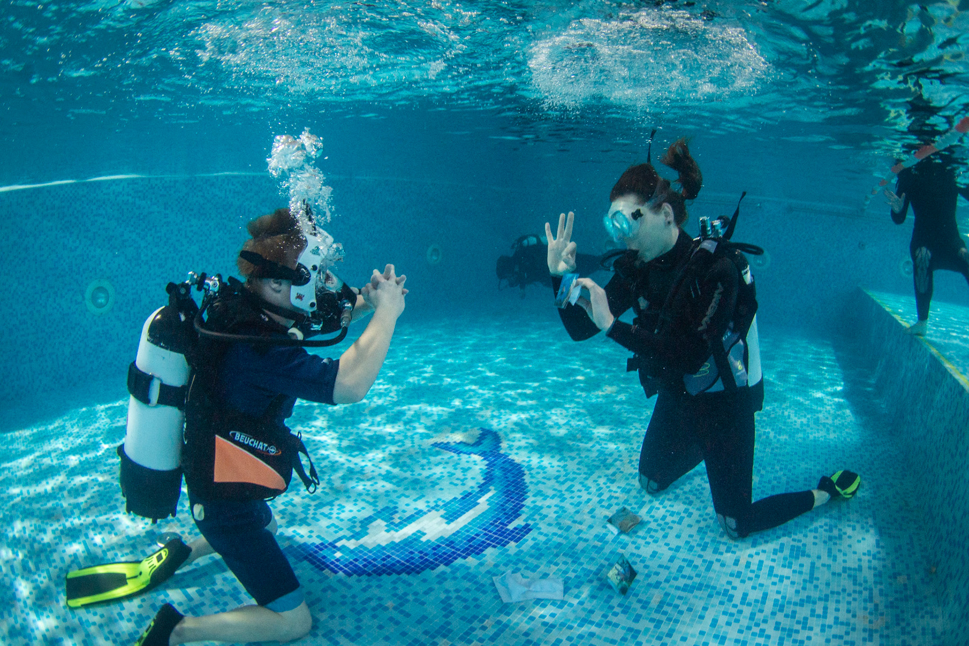 Při našich trénincích se snažíme rozvíjet i další dovednosti našich členů, učíme se používat pod vodou různé pomůcky, poznáváme vodní živočichy, učíme se signály. Někomu to jde lépe, jinému pomaleji, ale všechny nás to baví!